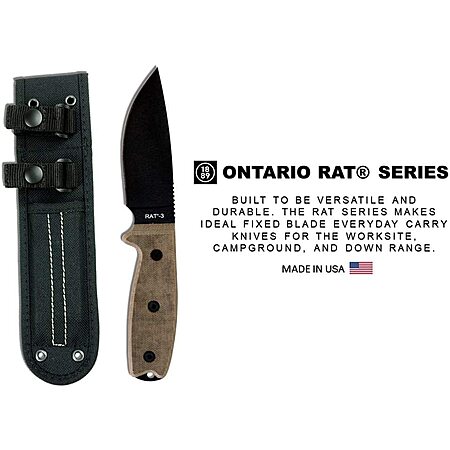 Amazon has Ontario Knife Company Rat-3 Plain Edge 3.9" Blade w/ Black Nylon Sheath (8665) for $50.46. Shipping is free.
