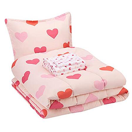 Amazon Basics Kids Easy-Wash Microfiber Bed-in-a-Bag Bedding Set (Twin, Pink Hearts) $15.25 + Free Shipping w/ Prime or on Orders $25+