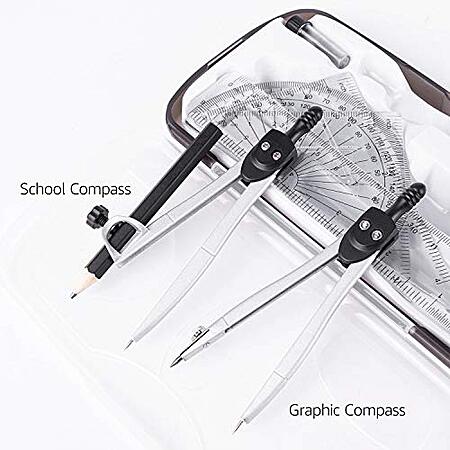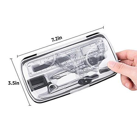 Model: Amazon Basics 10-Piece Math Kit - Includes Compasses, Graphite, Eraser, Sharpener, Protractor, Triangles, Ruler, and Carrying Box