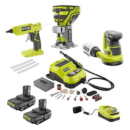 ONE+ 18V Cordless 4-Tool Hobby Compact Kit with (2) 1.5 Ah Batteries and Charger + free 4amp battery add-on selection $159