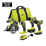 Home Depot has RYOBI ONE+ 18V Cordless 4-Tool Combo Kit with 1.5 Ah Battery, 4.0 Ah Battery, and Charger (PCL1400K2) + Choice of Select Bonus Tool/Accessory for $159. Shipping is free.