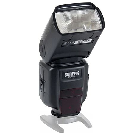 The SUNPAK DF3600U Universal Flash is the ideal accessory for today's digital SLR cameras. The DF3600U is designed to use 1 flash for both Canon and Nikon DSLR and HDSLR cameras. It has many advanced features, such as an automatic zoom head from 28 mm to 180 mm, a built-in wide-angle panel and bounce card, as well as a built-in slave for Canon and Nikon systems. It also has an easy-to-use LCD panel. Other features include a guide number of 120 at ISO 100, a metal hot shoe, a built-in sync port, and high-speed sync.