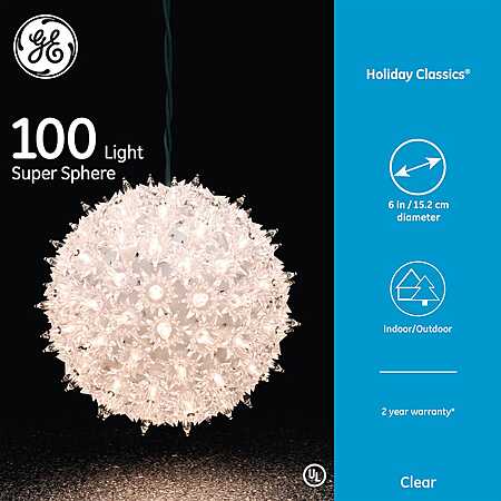 • This offer for GE Holiday Classics 100-Light Super Sphere (Clear) is $14 lower (70% savings) than the $19.99 list price.