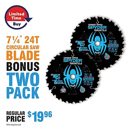 Lowe's, 10 piece Spyder Stinger 6-in Woodboring Spade Drill Bit Set or 2 pack 7-1/4 saw blades, $9.98, free pickup