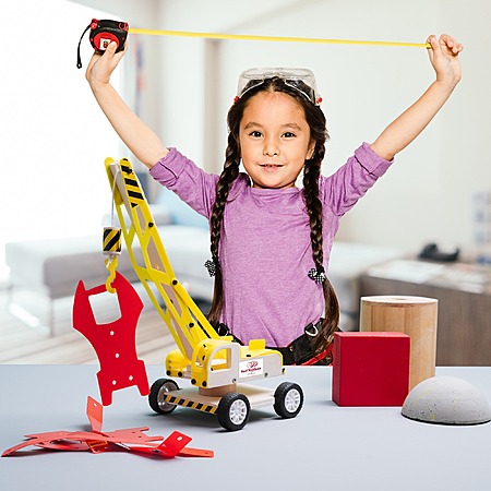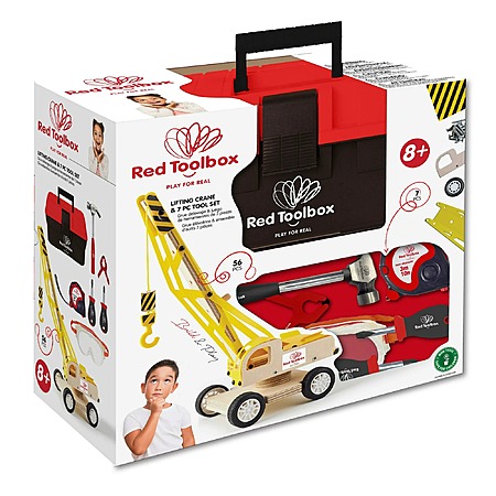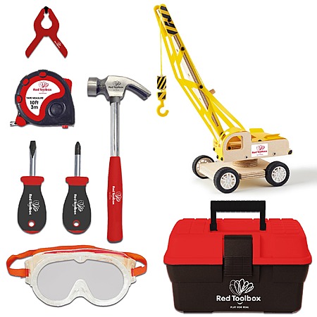 Model: Red Toolbox Kids 7pc Tool Set and Yellow Lifting Crane Kit, Includes Hand Tools, Toolbox, and Kit