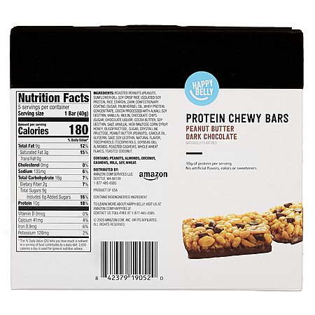 Happy Belly (Amazon brand) Protein Chewy Bars (4 x 6 packs of 5 bars) for $43.14 after subscribe and save and -20% off