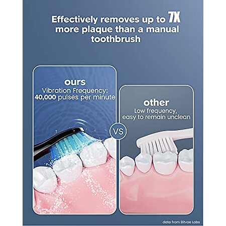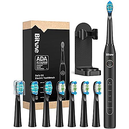 Bitvae Ultrasonic Electric Rechargeable Toothbrush Set w/ 8 Heads (Black)
