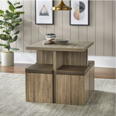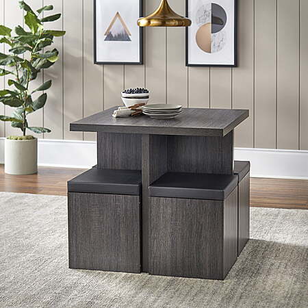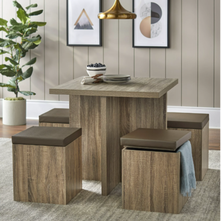 5-Piece Mainstays Dexter Dining Set (Table + 4 Storage Ottomans)