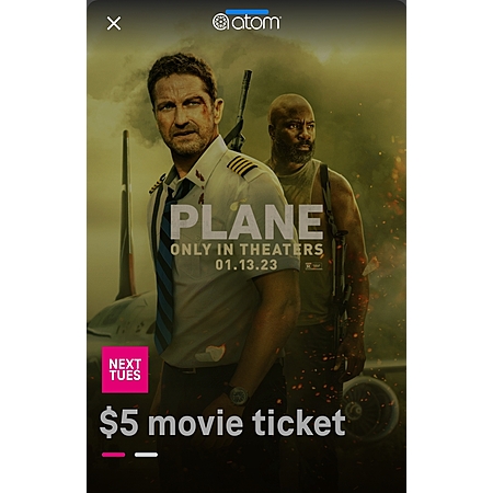 Atom tickets: $5 ticket to see Plane