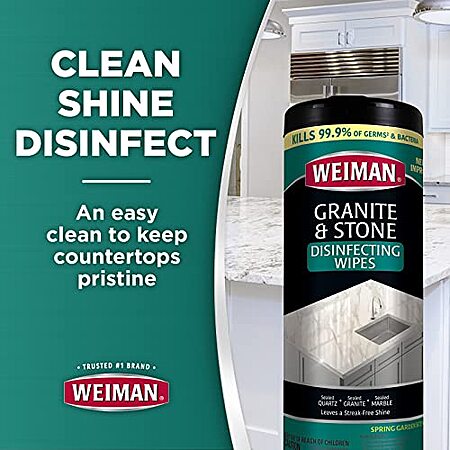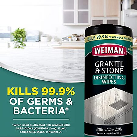 Amazon has 30-Count Weiman Granite Cleaner and Polish Wipes for $3.14 when you 'clip' the $1.08 coupon on the product page. Shipping is free w/ Prime or on orders $25+.