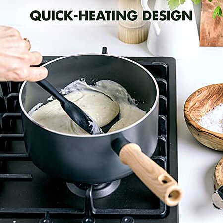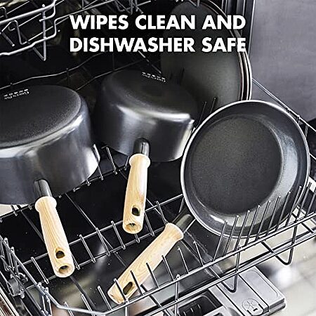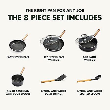 GreenPan Hudson Healthy Ceramic Nonstick, 8 Piece Cookware Pots and Pans Set, Vintage Wood Inspired Handle, PFAS-Free, Dishwasher Safe, Black $77