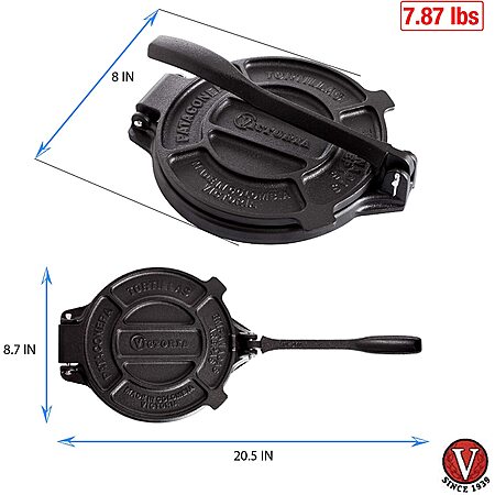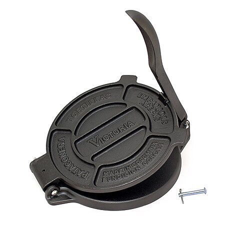 Model: Victoria 8 Inch Cast Iron Tortilla Press. Tortilla Maker, Flour Tortilla press, Rotis Press, Dough Press, Pataconera Seasoned with Flaxeed Oil, Black -