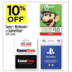 Dollar General [Weekly Ad / Store Locator] is offering select Sony PlayStation, Nintendo eShop or GameStop Physical Gift Cards for 10% Off valid for in-store purchase only.