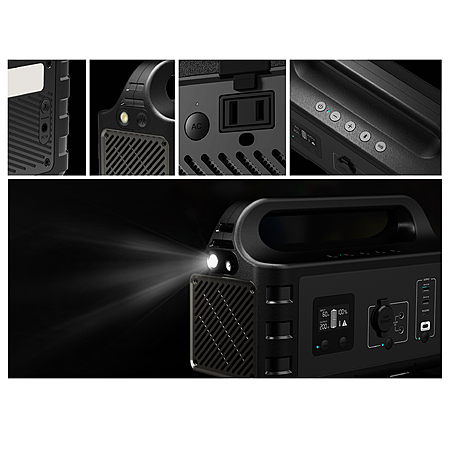 • Output: 2 DC 12V/5A, 60W max, 2 USB charge port: 5V/3.1A, 1 USB C port: 5V/3A 9V/2A, 1 USB C USB Power Delivery (Input/Output) port: 5V/3A, 9V/3A, 12V/2.5A, 15V/2A, 20V/1.5A, 1 car auxiliary power outlet: 12V/10A 120W max, 1 AC output: 100 120V 60Hz (200W rated, 300W peak)