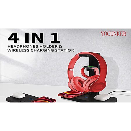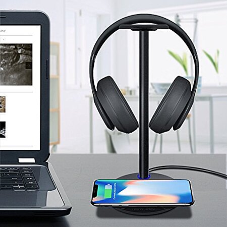 Fast Wireless Charging with Headphone Stand New Bee Sturdy 2-in-1 Headset Holder & Wireless Charger Pad for iPhone Xs MAX/XR/XS/X/8/8 Plus Galaxy Note 9/S9/S9 Plus/Note 8/S8 $10