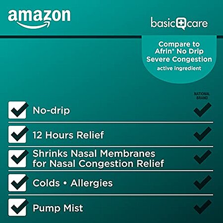 Model: Amazon Basic Care Severe Congestion Nasal Spray, Oxymetazoline HCl; Provides 12 Hour Nasal Congestion Relief, 1 Fluid Ounce