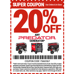 Harbor Freight offers 20% off Predator generators with coupon.