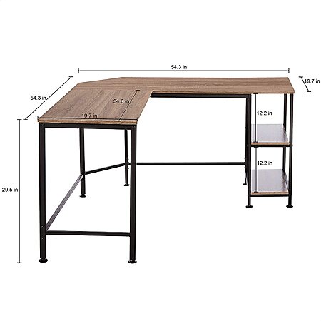 Amazon[amazon.com] has Amazon Basics L-Shape Computer Desk with Shelves for Storage, 54.3 Inch, Espresso with Black Frame for $44.27. Shipping is free w/ Amazon Prime or on orders $25+.