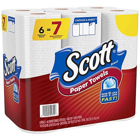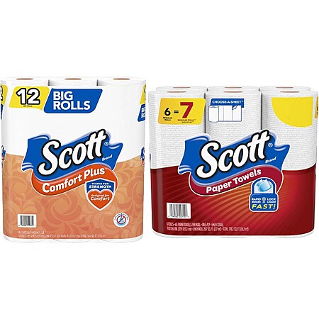 6-Pack Scott Choose-A-Sheet Paper Towels + 12-Pack Scott ComfortPlus 1-Ply Big Rolls Toilet Paper on sale for