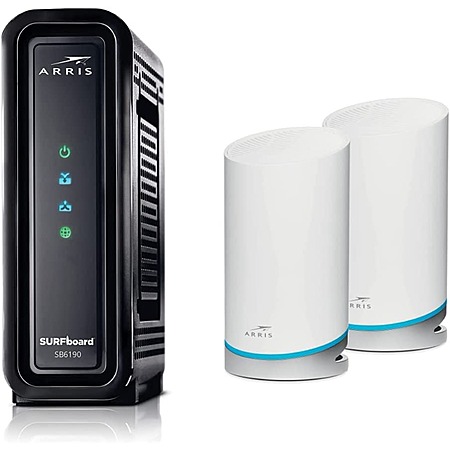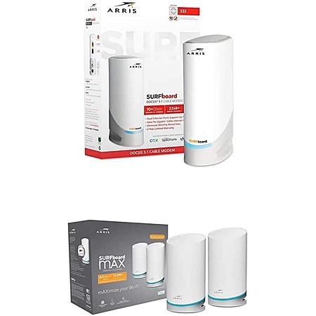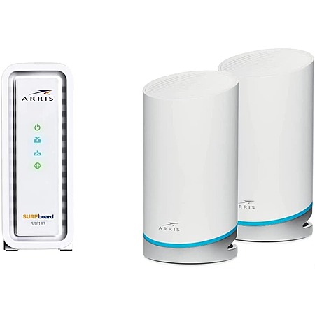 Arris Surfboard Modem + AX Mesh Tri-Band Router Bundles: Surfboard SB6190 DOCSIS 3.0 Modem w/ W121 AX6600 Wifi 6 Mesh Router $233 & More + Free Shipping