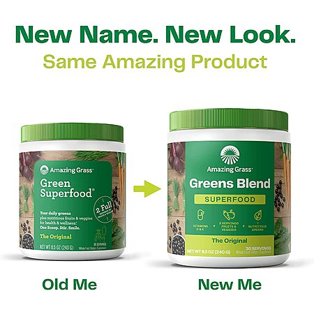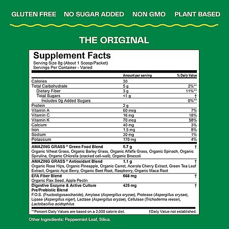 Model: Amazing Grass Greens Blend Superfood: Super Greens Powder with Spirulina, Chlorella, Beet Root Powder, Digestive Enzymes, Prebiotics & Probiotics, Original, 60 Servings (Packaging May Vary)
