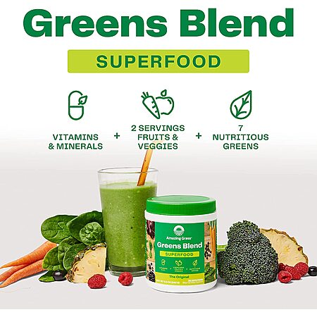 Amazon has Amazing Grass Green Superfood Organic Powder w/ Wheat Grass on sale listed below when you 'clip' the 25% off coupon on the product page and checkout via Subscribe & Save. Shipping is free.
