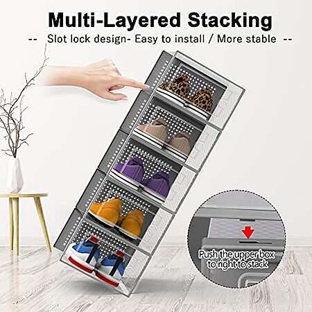 Kuject Shoe Organizer Storage Boxes for Closet 12 Packs Grey, Clear Plastic Stackable Shoe Storage Bins with Drawers & Lids, Under Bed Shoe Storage Containers For Entryway $29.99