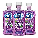 Amazon has 16.9-Oz ACT Kids Anticavity Fluoride Rinse (Groovy Grape) for $4.48. Add a quantity of 3 to cart for $13.44 - 5% when you checkout via Subscribe & Save - $5 multi-buy discount = $7.77. Shipping is free w/ Prime or on $25+.