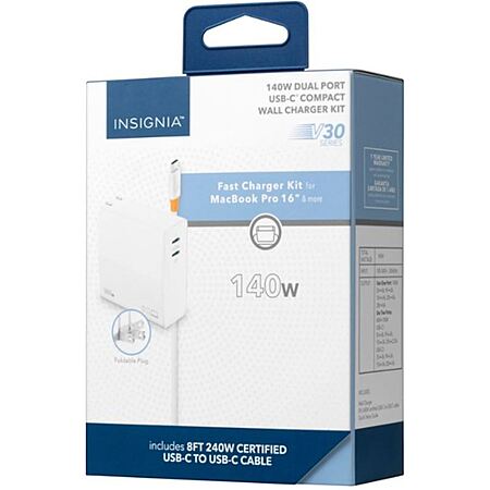 Best Buy has Insignia 140W Dual Port USB-C Compact Wall Charger w/ 8' USB-C to USB-C Cable (NS-PW3X4C2W22B) on sale for $43.99. Shipping is free.