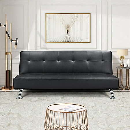 Easyfashion Convertible Faux Leather Futon Sofa Bed (Black, White) $143.00 + Free Shipping