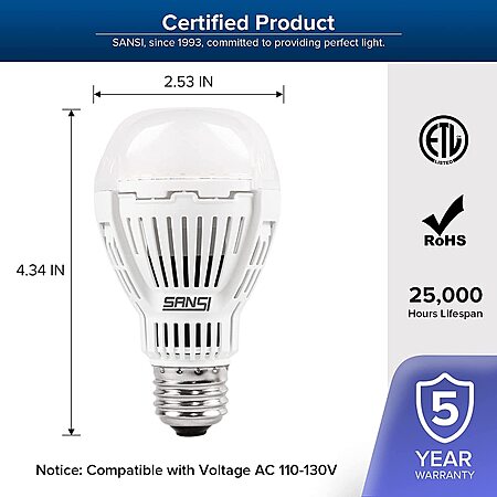 4-Pack Sansi 100W Equivalent LED Light Bulbs (Soft White, A19)