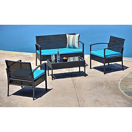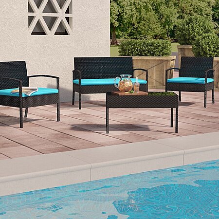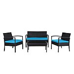 4-Piece Winston Porter Carlyssa Outdoor Wicker Furniture Set w/ Cushions (Blue) $170 + Free Shipping