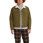 Model: Levi's Men's Regular Fit Sherpa Canvas Trucker Jacket - Dark Olive