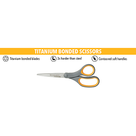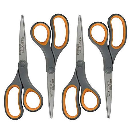 Acme United Corp via Amazon[amazon.com] has 4-Pack Westcott 8" Soft Handle Titanium Bonded Scissors (Gray/Yellow) on sale for $11.99 - 5% off when you clip the coupon on page = $11.39. Shipping is free w/ Prime or on orders $25+