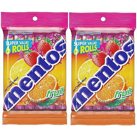 6-Pk Mentos Chewy Rolls 2 for $5.20 or 45-50 Count Mentos Gum (Various)