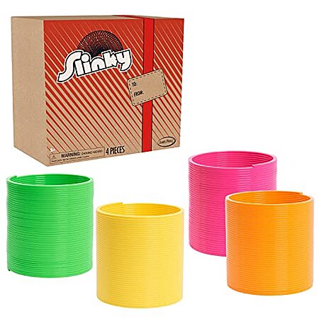 Model: Slinky the Original Walking Spring Toy, Plastic Giant Slinky 4 Pack, by Just Play