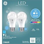 GE LED+ Color Changing Light Bulbs, 18 Colors & 5 Light Modes, No App or Wi-Fi Required, Remote Included, A19 (2 Pack) $11.47