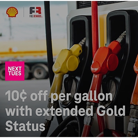 • Shell: $0.10/per gallon w/ Extended Gold Status