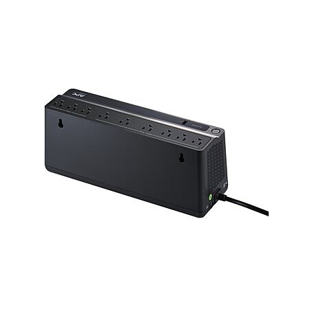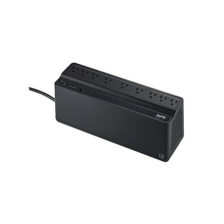 Protect and power your electronics during an electricity outage with this APC Back-UPS battery backup. The 9 outlets offer surge protection to defend against potential damage, while the internal battery delivers a steady source of power. An integrated USB port makes it easy to power up portable devices for emergency use. This APC Back-UPS battery backup boasts audible alarms, serving as an alert to possible issues.