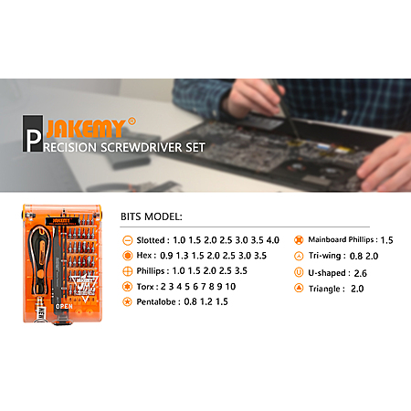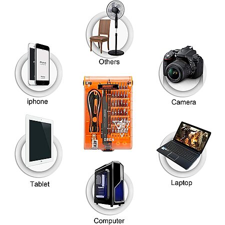 Model: Screwdriver Set 43 in 1 Precision Screwdriver Kit JAKEMY Magnetic Replaceable Bits Repair Tool Kit Opening Tool and Tweezer for iphone Cellphone PC Electronics
