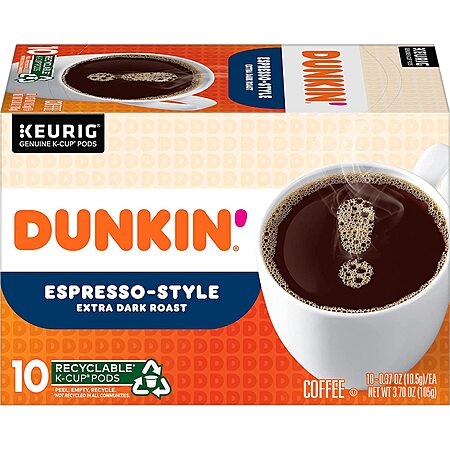 Amazon [amazon.com] has the 60-Count Dunkin' Espresso Style Extra Dark Roast Coffee K-Cup Pods for $25.99 ($0.43/ea) when you 'clip' the 30% discount coupon on the product page and check out with Subscribe & Save. Shipping is free.