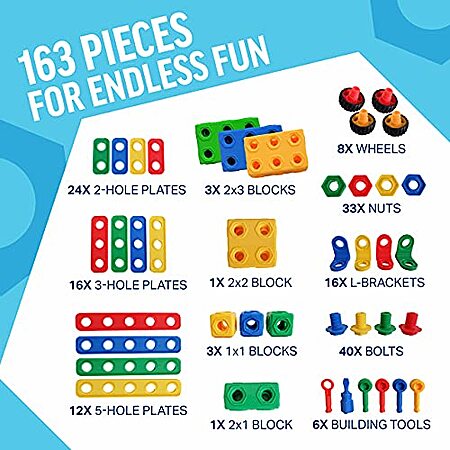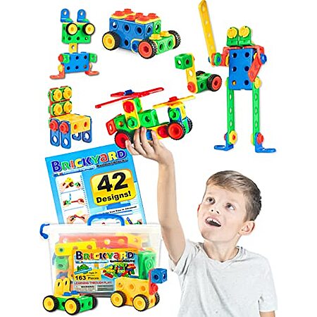 Model: Brickyard Building Blocks STEM Toys - Educational Building Toys for Kids Ages 4-8 with 163 Pieces, Tools, Design Guide and Toy Storage Box, Gift for Boys & Girls