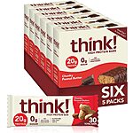 Amazon has 30-Count 2.1-Oz think! Protein Bars (Various Flavors) on sale for prices starting from $26.91 when you clip the 25% off coupon located on the product page and check out via Subscribe & Save. Shipping is free.