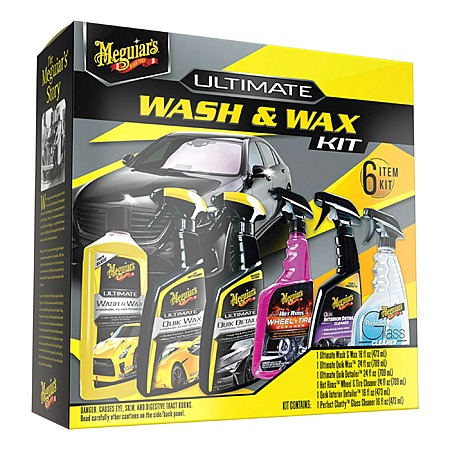 Walmart has 6-Piece Meguiar's Ultimate Auto Wash and Wax Kit on sale for $22. Shipping is free with Walmart+ (free 30-day trial) or on orders of $35 or more.