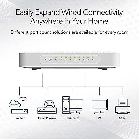 Model: NETGEAR 8-Port Gigabit Ethernet Unmanaged Switch (GS608) - Desktop or Wall Mount, Home Network Hub, Ethernet Splitter, Silent Operation, Plug-and-Play