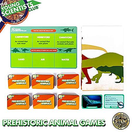 PUT YOUR KNOWLEDGE OF PREHISTORIC ANIMALS TO THE TEST: The Young Scientists Club Prehistoric Animals Card Game is a great way to make learning a fun, interactive experience for dino lovers!