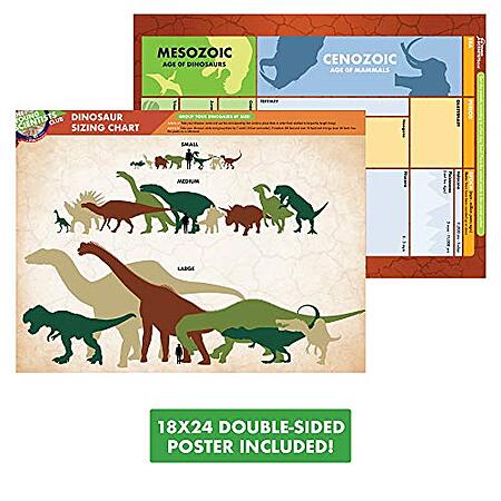 HANDS-ON ACTIVITY POSTER: Create your own prehistoric timeline on one side and sort each dinosaur card according to their size on the other!