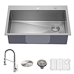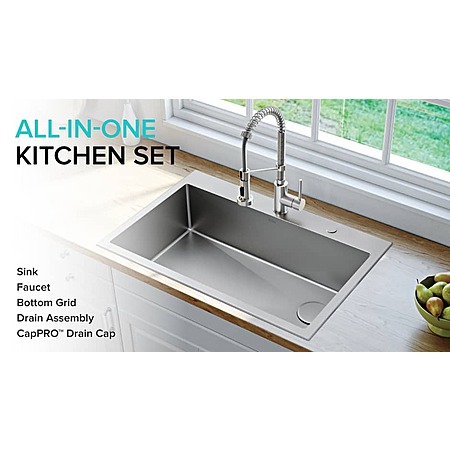 KRAUS Loften All-in-One Stainless Steel 33 in. 2-Hole Single Bowl Drop-in / Undermount Kitchen Sink with Pull Down Faucet KCH-1000 - $257.40