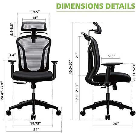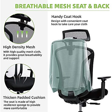 JHK High Back Ergonomic Mesh Home/Office Computer Chair w/ Adjustable Headrest, Hanger, Soft Foam Seat Cushion & Lumbar Support (Black) $72 + Free Shipping
