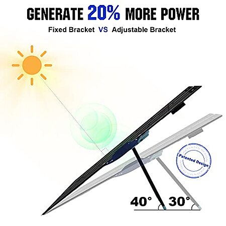 • The foldable solar panel has a special kickstand, which can adjust solar panel angle to 30 degrees or 40 degrees so that the solar panel can absorb the maximum sunlight and get more power